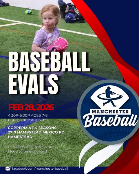 Are you new to baseball? New to the Manchester area? Or do you just have questions about our league? Manchester Baseball will be holding a parent information session on Thursday February 12th at 7pm. We hope to see you there