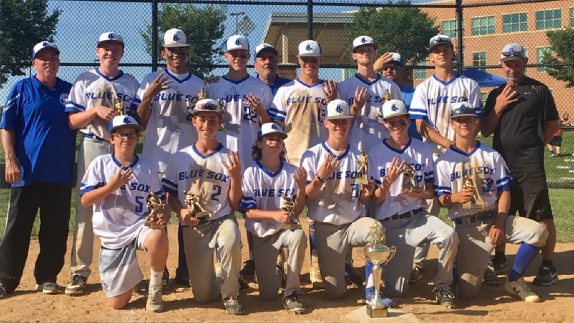 Pictured: Coach Bob Quigley, John Quigley, Charles Clark, Josh Bethas, coach Jeff Scott, Ty Cromer, Aaron Hughes, Coach Terry Ingle, Adam Hickey, Rich Berzonski (3rd base coach filling in for coach Zach Scott). Kneeling: Gavin Hickey (bay boy), Josh Berzonski, Ryan Scott, Jacob Ingle, Ian Frain, Matthew Reynolds, Missing but participated in day one: Broch Carpenter